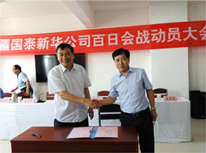 8月12日,應(yīng)新疆國(guó)泰新華礦業(yè)股份有限公司邀請(qǐng),公司總經(jīng)理、黨委副書記張雪銘赴新疆國(guó)泰總承包項(xiàng)目現(xiàn)場(chǎng)參加項(xiàng)目竣工投產(chǎn)前“百日會(huì)戰(zhàn)”動(dòng)員大會(huì),并代表我司簽署《“百日會(huì)戰(zhàn)”目標(biāo)責(zé)任書》。